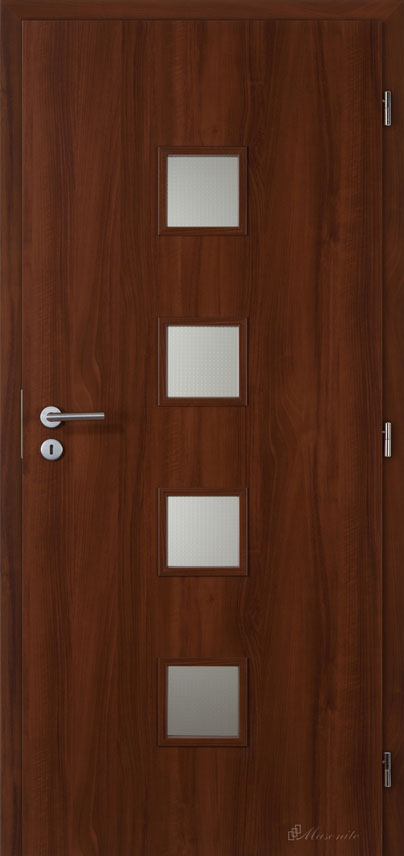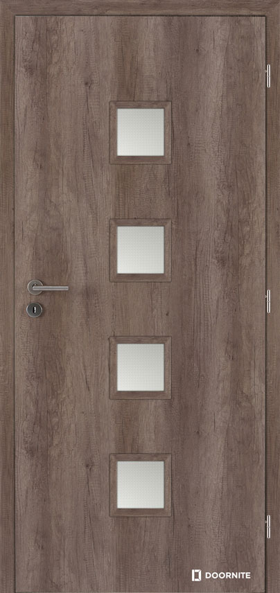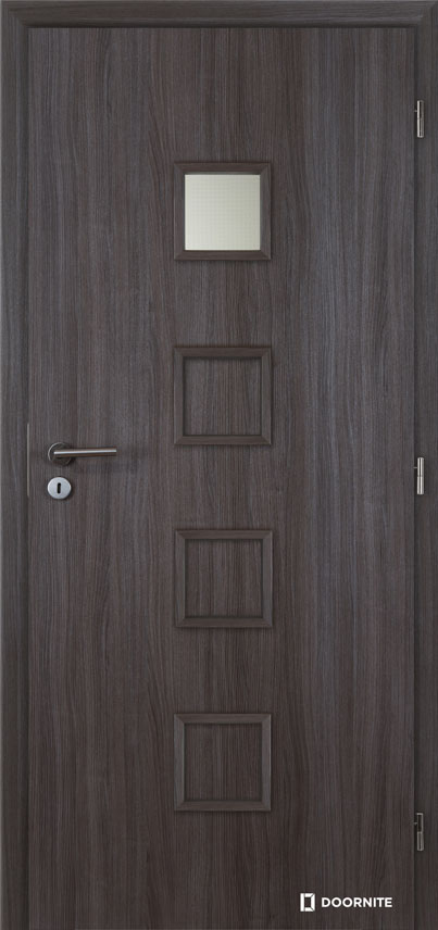 The frames are made of MDF material covered with foil in the same design as the door leaf. Standard glazed with sandblasted glass.