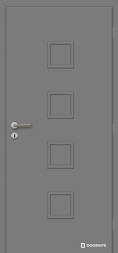 Internal opening door. Frame made of MDF. Double-sided coated with HDF or DTD board with selected surface finish. Door frame according to your choice.