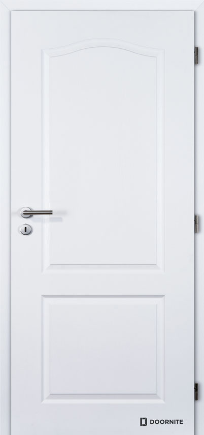 Interiérové dveře tvořené dveřním rámem z MDF materiálu oboustranně opláštěn HDF texturovanými deskami se specifickým prolisem. Nástřik bílou barvou RAL 9003 (jiné odstíny RAL za příplatek). Výplň voština.