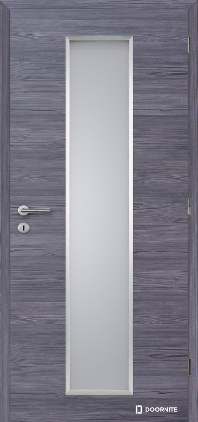 Zasklievací rámček pri dverách ALU Vertika a ALU Linea je potiahnutý Alu fóliou. Štandardne osadené pieskované sklo.