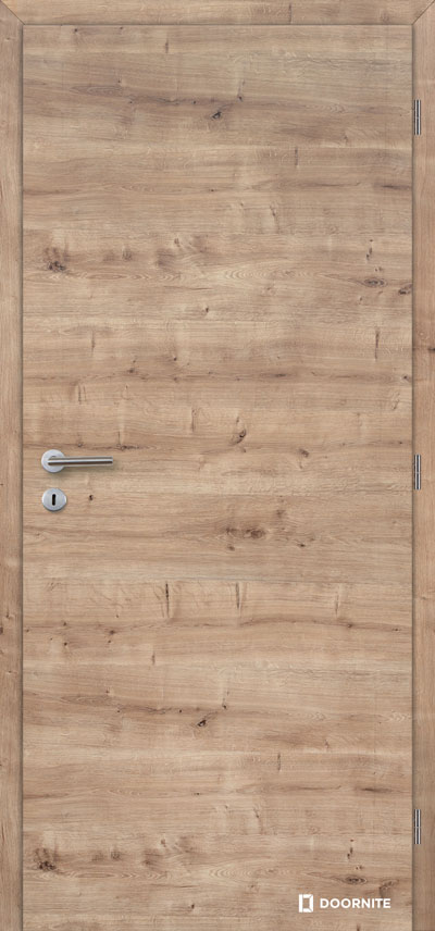 Jednokřídlé interiérové protipožární bezpečnostní plné hladké otočné dveře s polodrážkou s deklarovanou vyšší vzduchovou neprůzvučností při osazení do ocelové bezpečnostní zárubně B2 Masonite s těsněním.